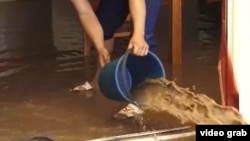 "Вот, смотрите какой ущерб! Там еще у нас есть магазин, товар там уже непригоден, – жалуется Жаныл Жунусова. – Подвал вообще полон воды. Во всей Чолпон-Ате, оказалось, нет насосного оборудования. Мы позвали детей и теперь руками собираем эту грязь. А были бы машины специальные, - подвалы очистили бы в два счета".