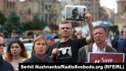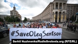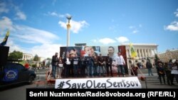 В Киеве на Майдане Незалежности (площадь Независимости) несколько сотен человек вышли на акцию в поддержку режиссера Олега Сенцова и других украинских политзаключенных, которых удерживают в тюрьмах России.