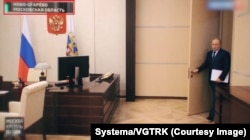 Именно в этом, третьем кабинете Путин проводил совещания после пожара в "Зимней вишне" в марте 2018 года. Если присмотреться к этой декорации, можно заметить, что она отличается от предыдущих двух – кабинета в Ново-Огарёве и его сочинского двойника.