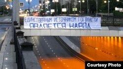 Полиция Алматы 29 апреля задержала активиста Романа Захарова: он вывесил на пешеходном мосту на проспекте Аль-Фараби баннер с цитатой из Конституции Казахстана "Единственным источником госвласти является народ". Надпись на баннере повторяет пункт 1 статьи 3 Конституции Казахстана.